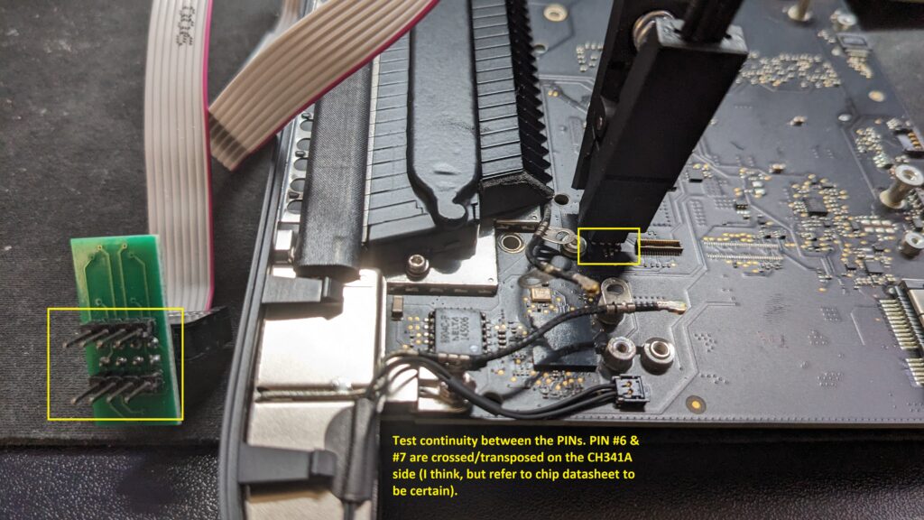 - Use a multimeter to test the continuity after fitting the clip onto the BIOS chip. It’s not absolutely necessary but it saved me a lot of time when trying to get a solid connection.