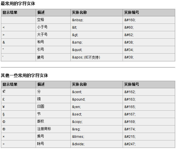4). 无论是以Transitional 还是 Strict 方式来写代码,形如"&"的字符实体都要写成对应的实体名称或实体代码才能够通过验证,比如上文JS代码中的"&"字符。以下是常用的字符实体及其名称和编号: